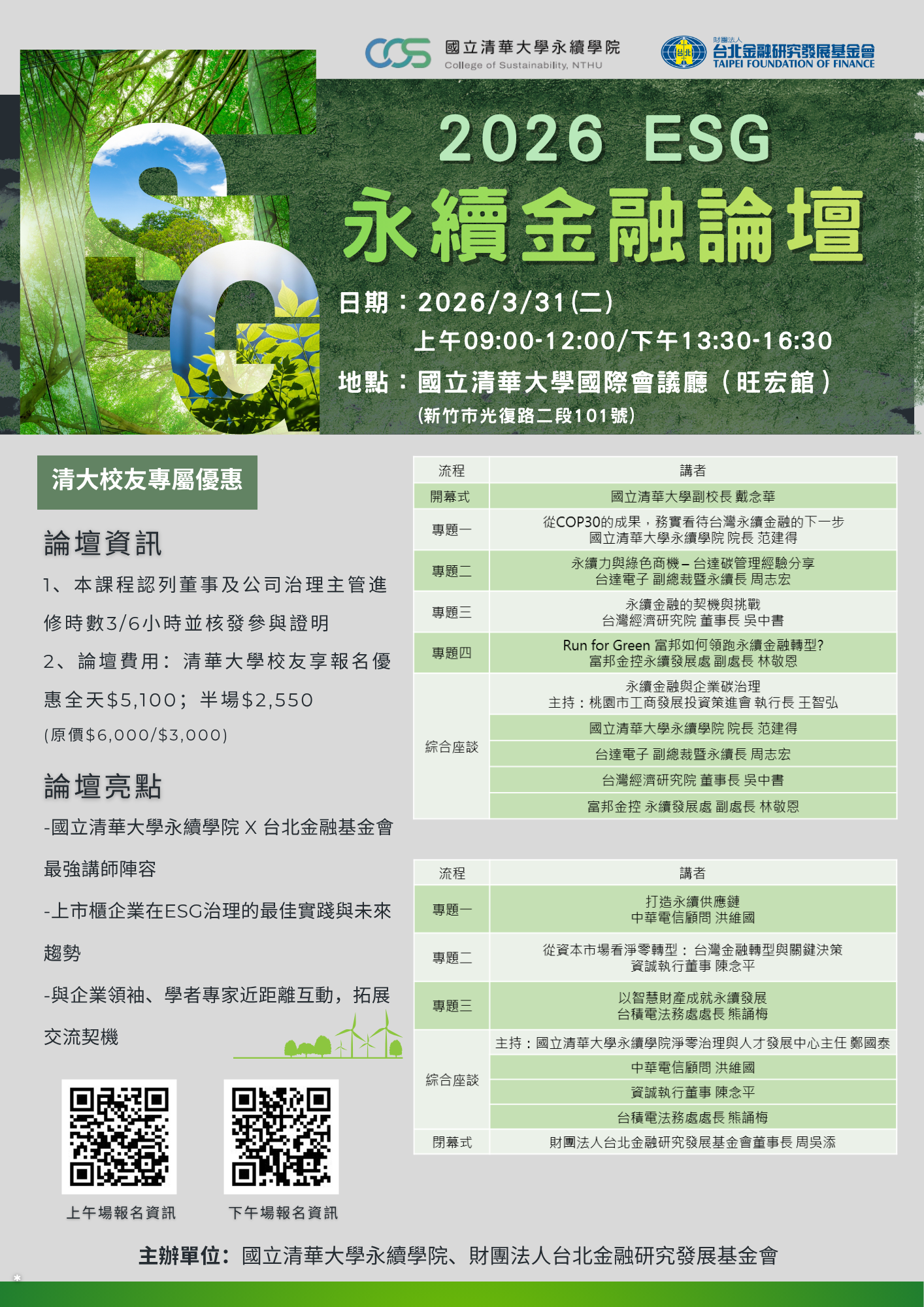 【2026 ESG 永續金融論壇】開放報名至3/30(一)